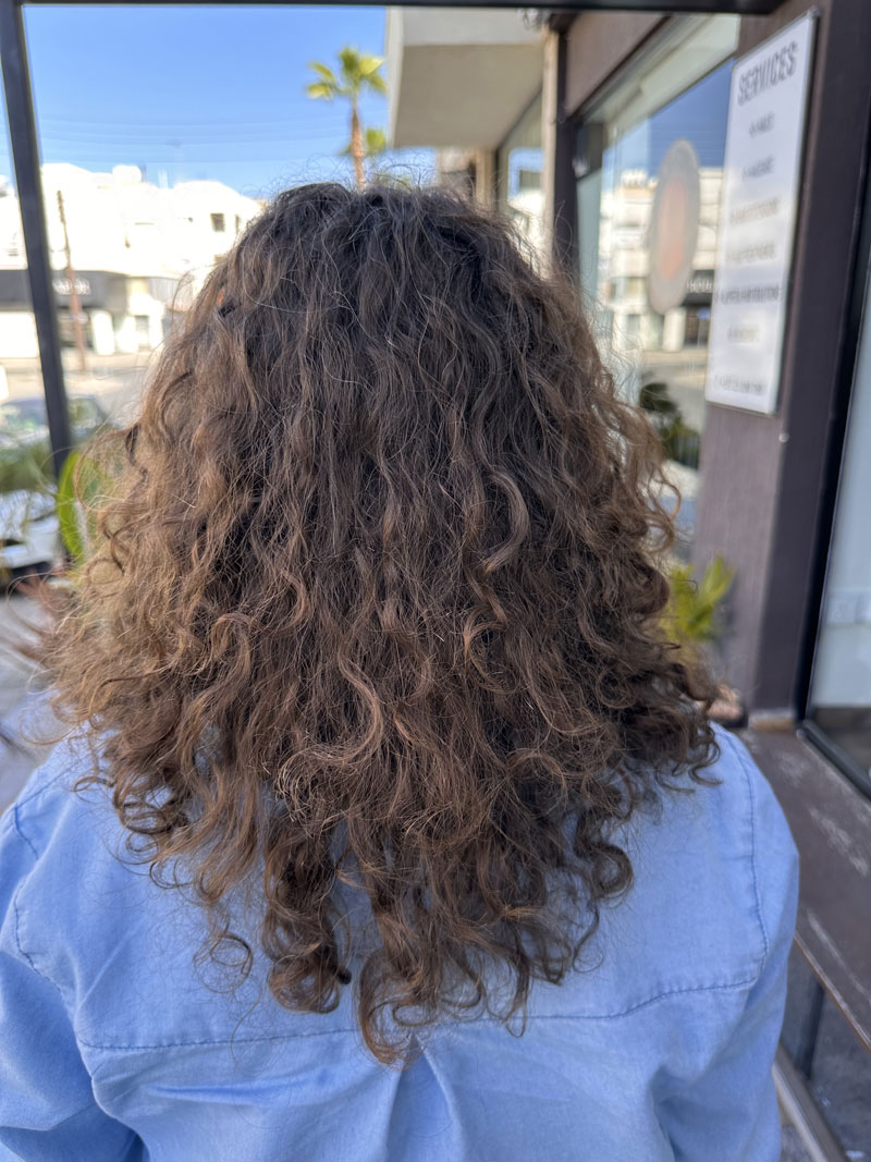 In addition, I will guide you on how to care for your curls daily—helping you maintain their health, shine, and elasticity. If desired, I can create a personalized care program, recommending specific products and teaching you how to apply them properly to keep both your curls and scalp in great condition.
